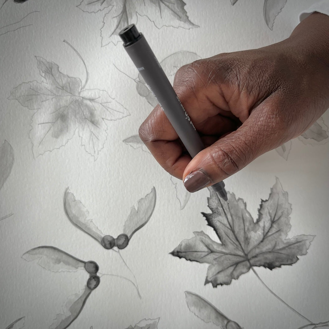 Those early ink sketches became the seed for DawnedUpon’s debut fabric collection — the beginning of a more grounded, soulful design practice rooted in nature, story, and stillness.