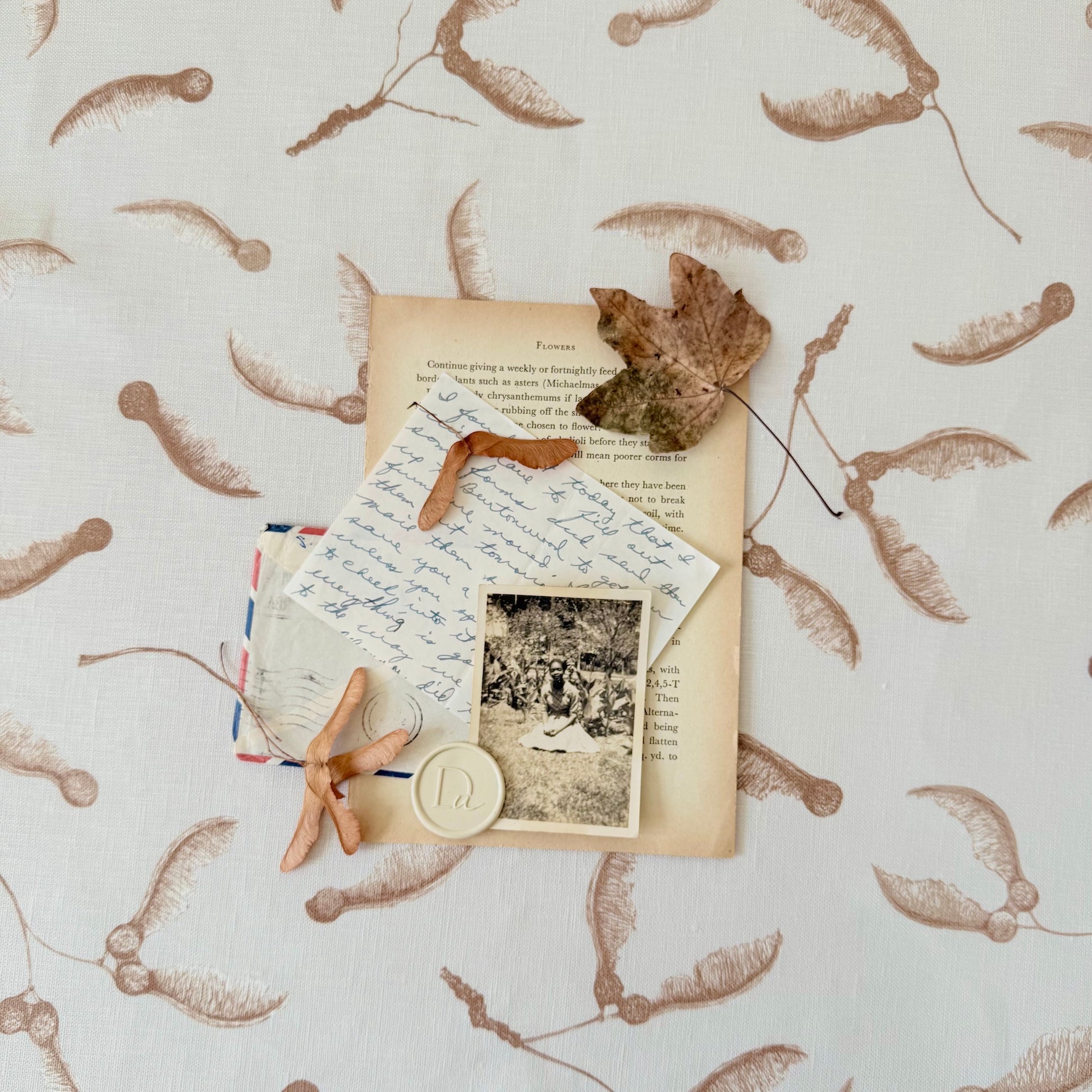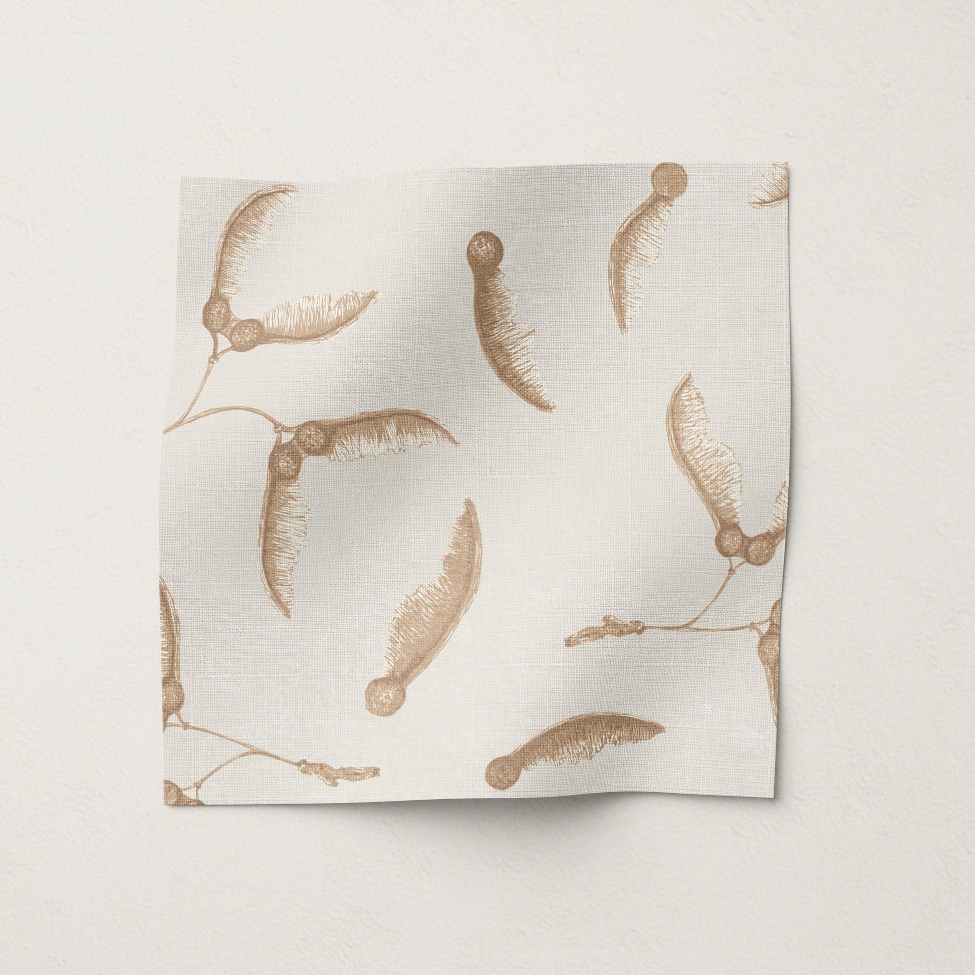 A hand-drawn linen capturing the gentle dance of drifting seeds on the breeze. The drifting seed pods and winged forms settle into a soft repeat, perfect for adding subtle movement and peaceful energy into interiors.