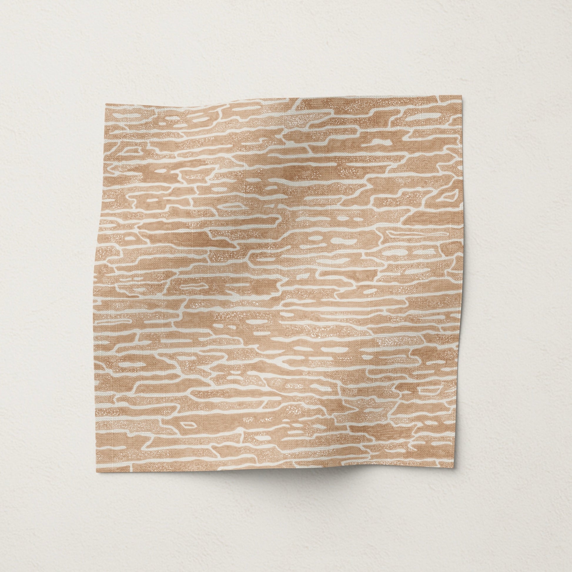This linen features hand-drawn bark patterns, dots, and weaves that create a textured, woven look. Its natural horizontal stripe adds a subtle elegance, perfectly complementing both modern and traditional interiors by adding depth and understated elegance.